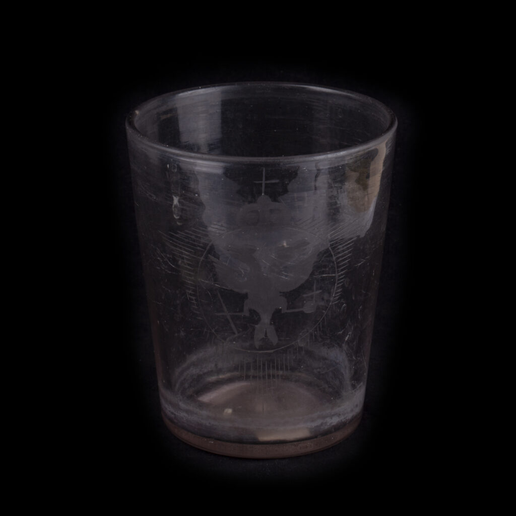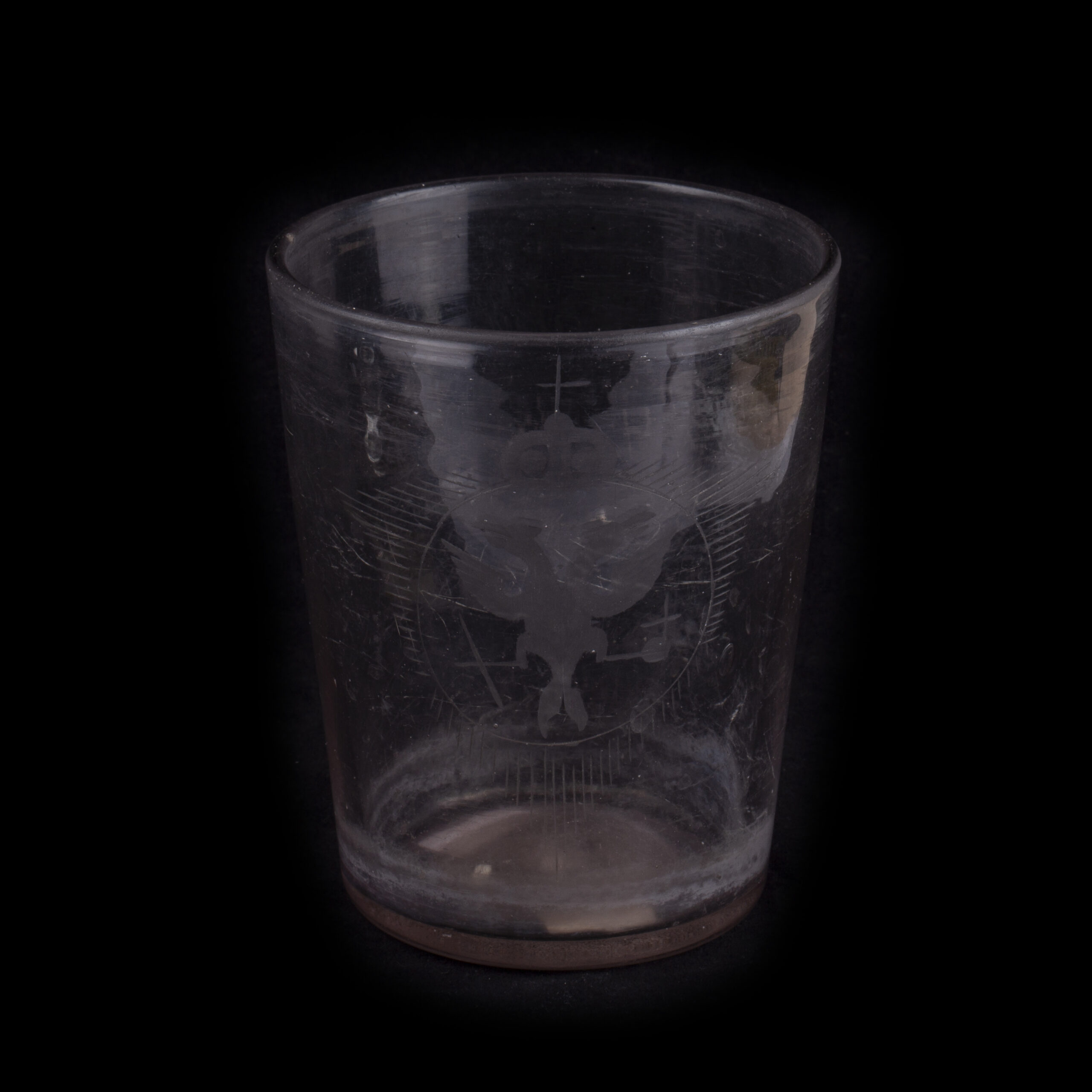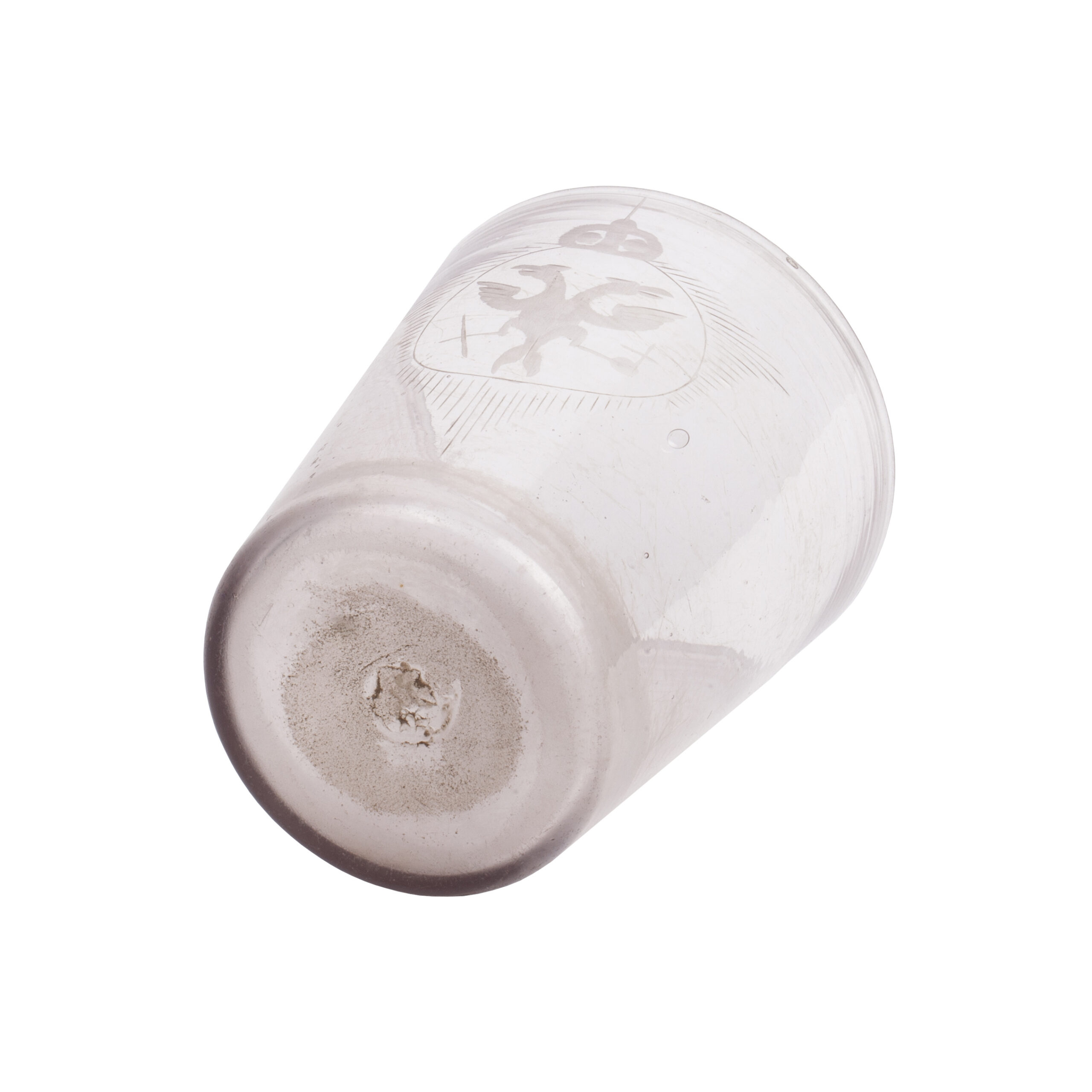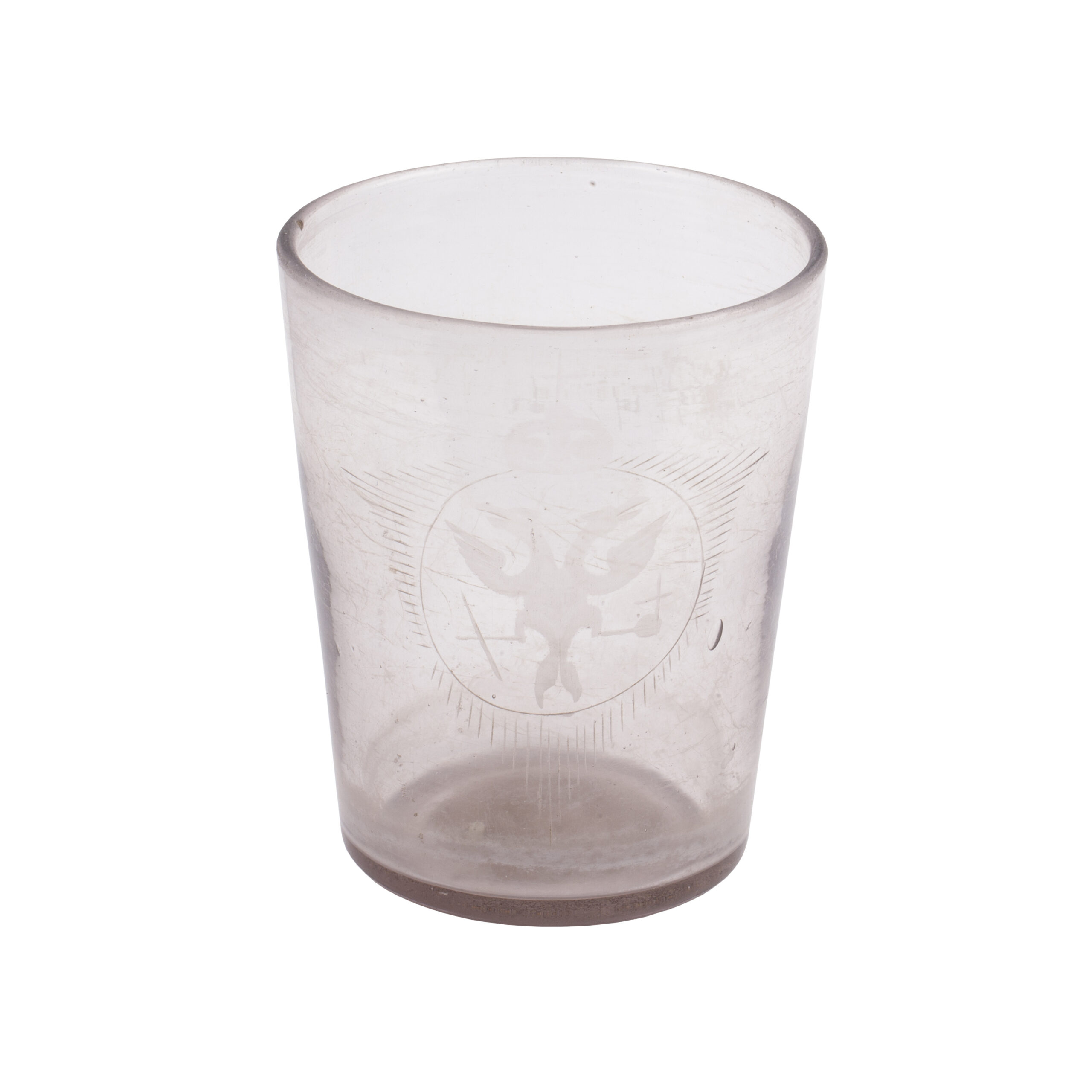 A finely crafted glass featuring an engraved double-headed eagle, a key emblem of the Russian Empire. The depiction stylistically corresponds to the heraldic tradition of the early 18th century. The vessel is well preserved, showing only minor signs of use. Comparable examples are held in the collection of the State Hermitage Museum. See similar https://www.hermitagemuseum.org/digital-collection/921075?lng=ru