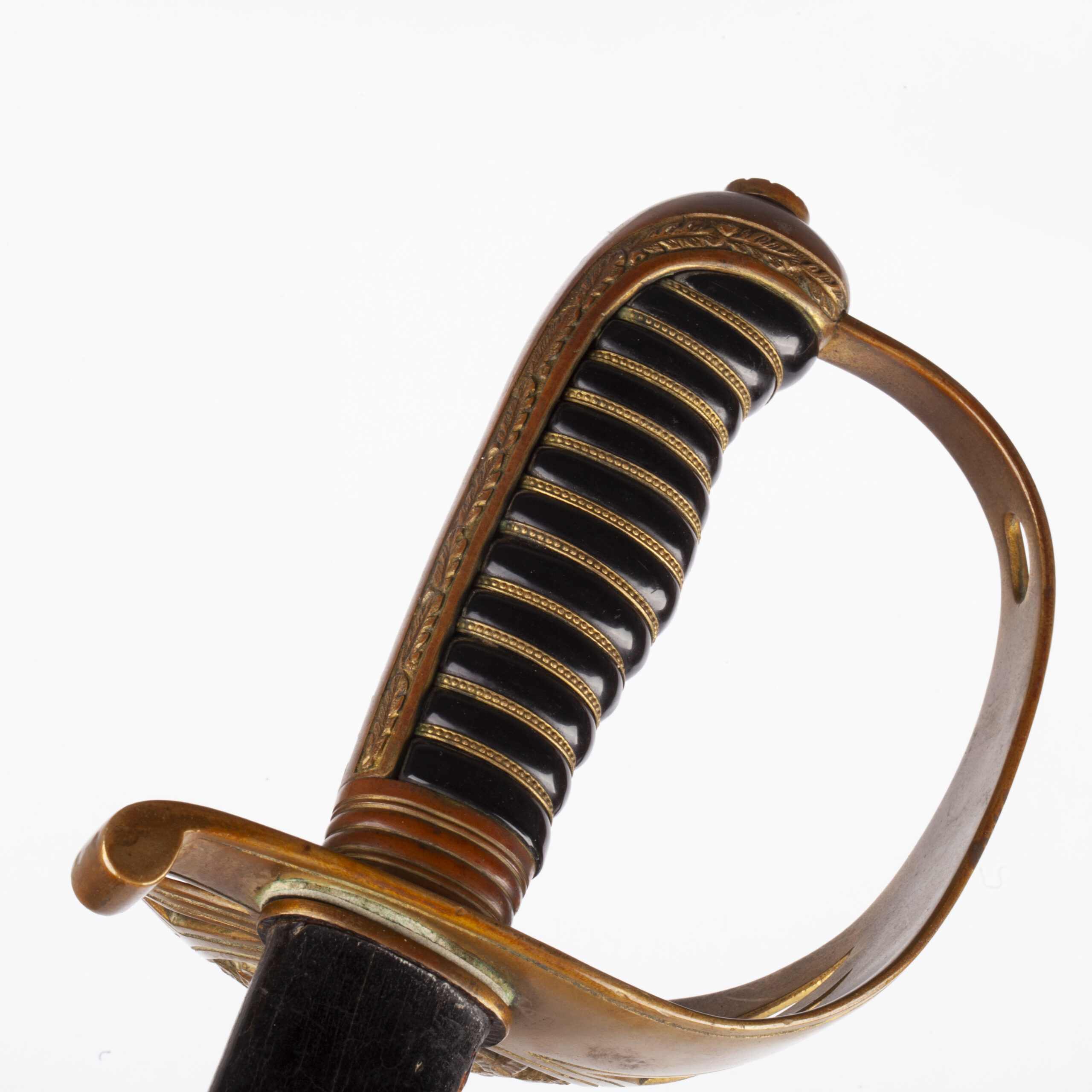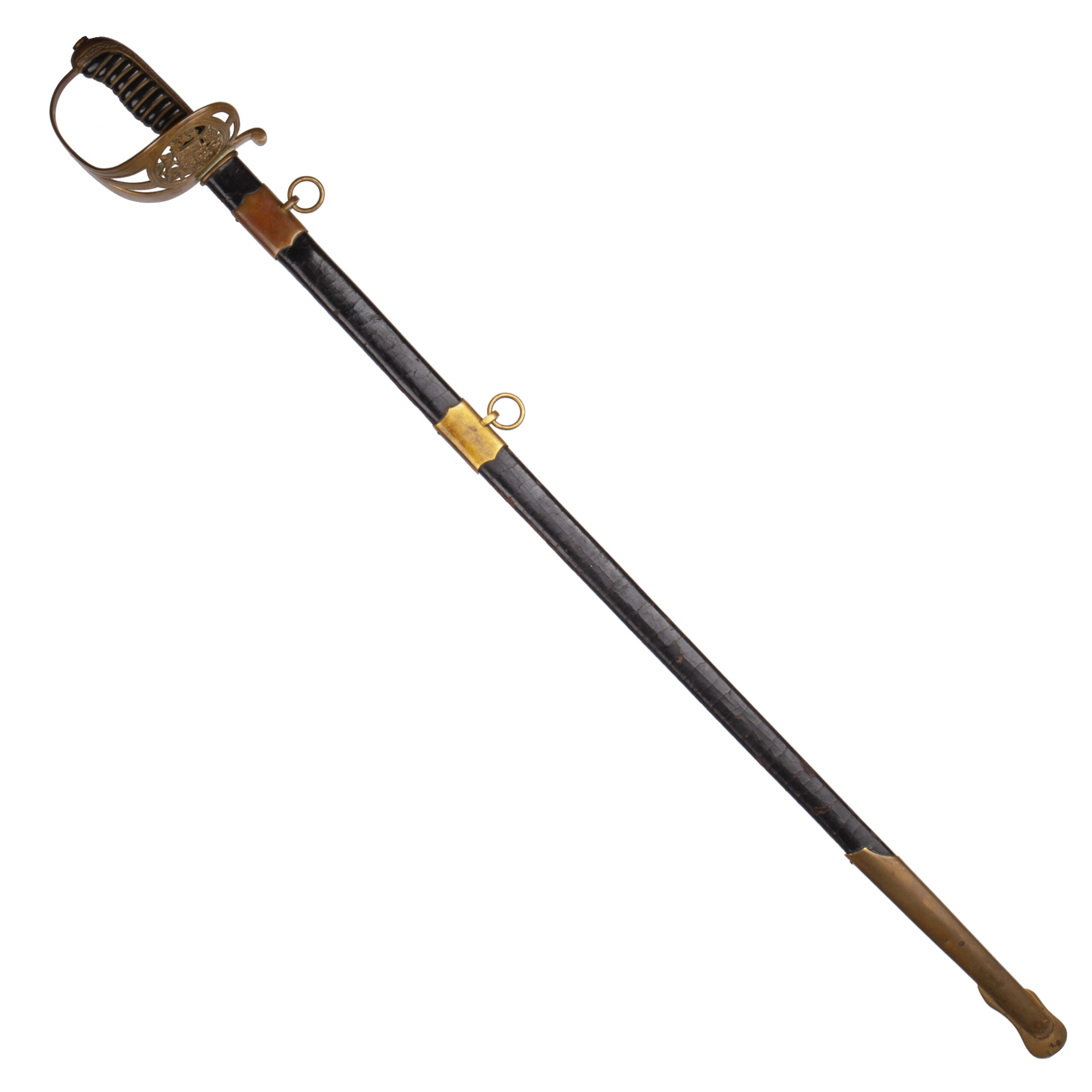 A key distinguishing feature is its elegant and scarcer leather scabbard with brass fittings, suggesting a specific dress pattern. The survival of such a potent symbol of Latvian sovereignty, especially in this condition, is remarkable.