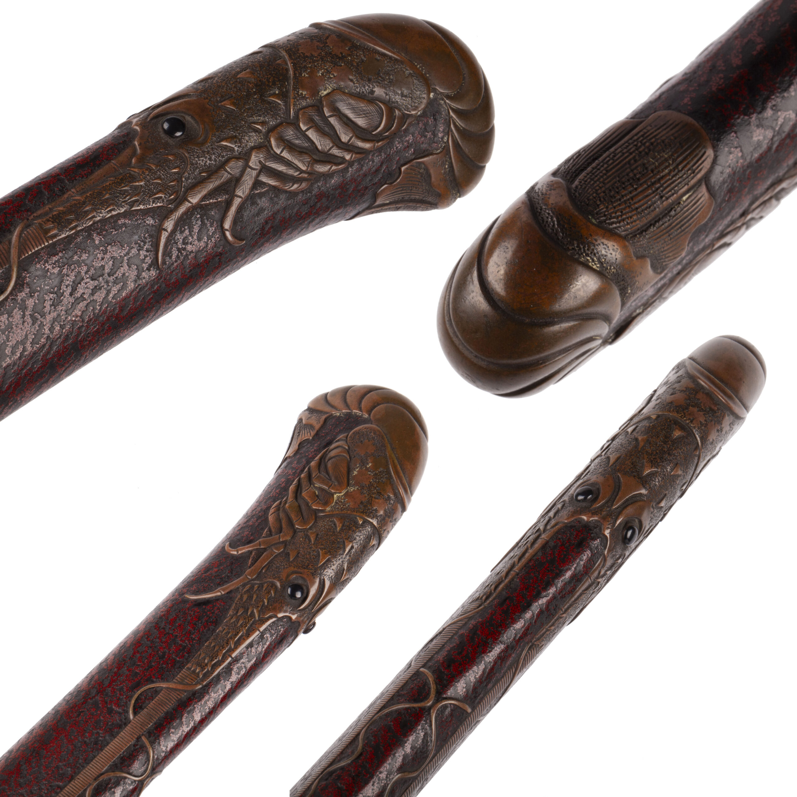 The rare lobster motif makes this koshirae a remarkable example of samurai-era Japanese metal artistry.
